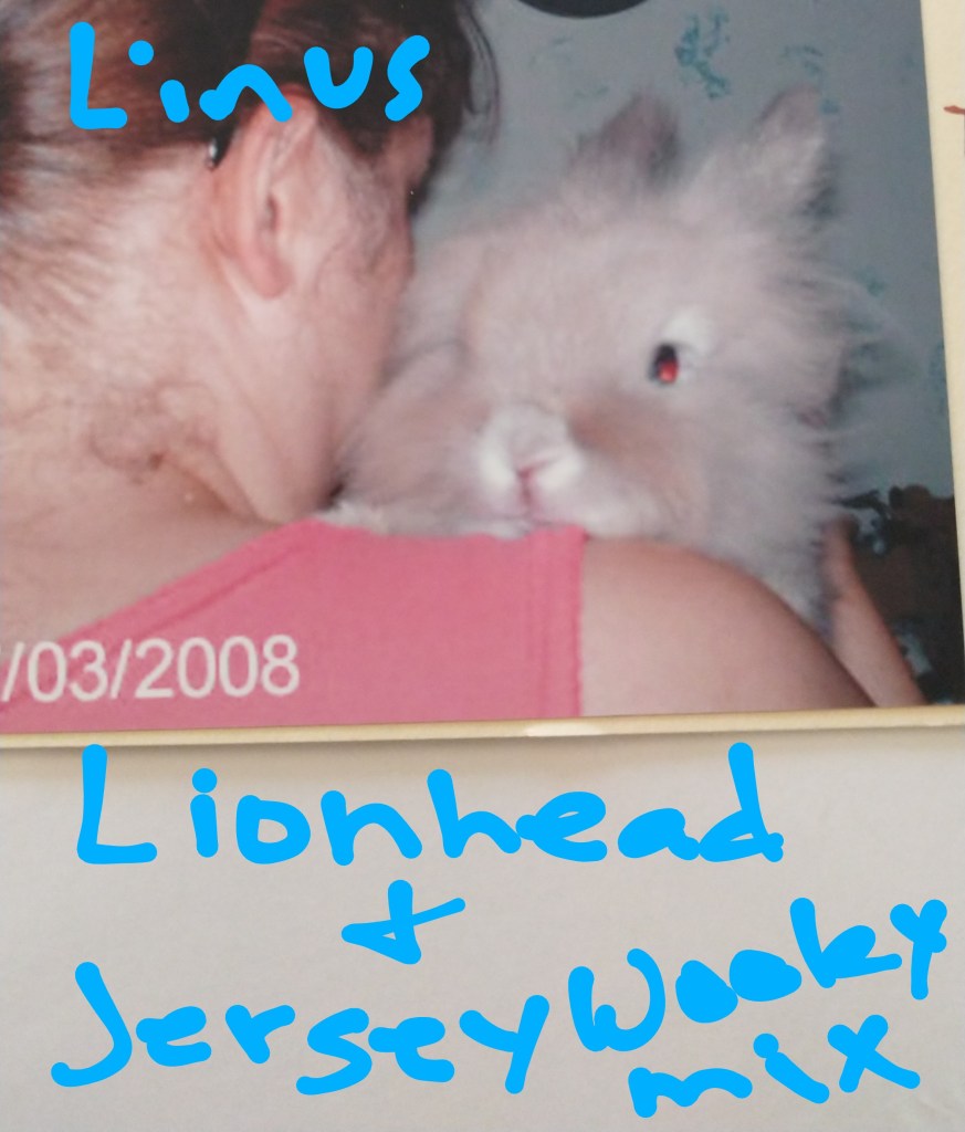 I decided to break this up into a series of at least 3, so not too long. Rabbits have different personalities, just like many pets. From my experience I found lopped-earred bunnies to be the most mellow, minis a little less mellow. Larger rabbits seemed to be smarter & learned to use litter box faster & were easier to teach. I fostered a California mix rabbit “Frosty” who I don’t think he knew he was a rabbit. He would try & steal food from me & he learned a couple tricks. He would go back to his pen to do his business most of the time. Note: rabbits drop dodo when excited. The photo below is of Frosty, he was about 10 lbs. Monitored he could hang out with the dogs I had at the time, I never left them alone together, not even for a few moments.