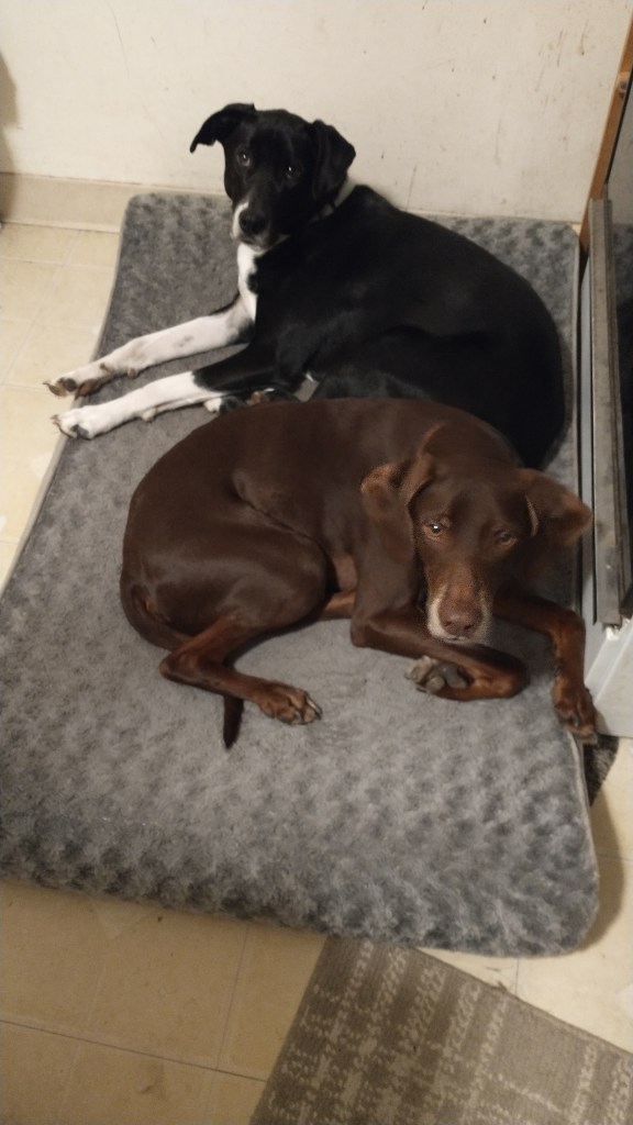 I’ve made you wait long enough to know what my dog’s breeds are. Hunter is the liver roam colored dog with a little white, he is 12 breeds total (7 have 3% or less of the breed), so I’ll just give you the top 5. They are: 42% German Short-haired Pointer. 21% English Setter. 13% Brittany Spaniel. 6% Boxer. 4% Cocker Spaniel. Hunter is about the same height as Echo, slim build & 46 lbs. Echo is approx 54 lbs & he is mostly black on top & his underneath & on some of his legs along with the very tip of his tail is white. He 10 breeds & his top 5 are: 22% Miniature American Shepherd (looks like an Australian Shepherd) . 16% American Pit Bull Terrier. 16% Irish Setter. 15% Australian Shepherd. 11% Boxer. (I’ll give you his other 5 th breeds they are: 8 % American Staffordshire Terrier, 6% Labrador Retriever, 4% Husky, 1% of Chow & Collie) Personally if you ask me he doesn’t look a lot like any of his breeds, so it made it interesting. He grabs his dog brothers legs (has 2 herding breeds) & he guards me & the house (Pit, Amstaf & Boxer in him), he also could shed enough to build a Chihuahua in a week.