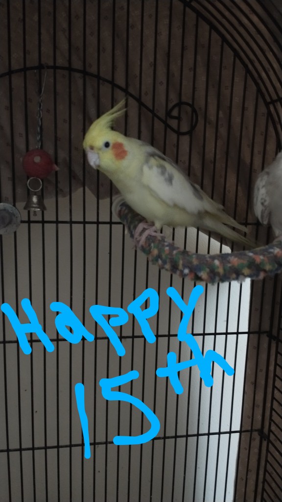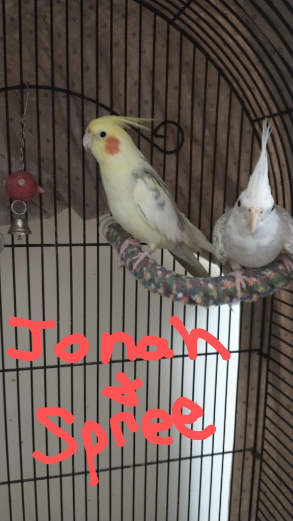 I can’t believe how fast time has gone, Jonah joined my family about 14 years ago. He was to be a cage mate to another male Cockatiel, but they never bonded. After a couple years my senior Cockatiel Noah passed away & after some time of playtime bonding outside the cage Issac accepted Jonah & they lived together till Issac passed away many years later.