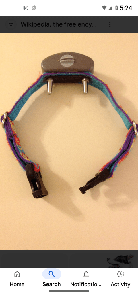 A Shock or e-collar (electric collar) is a collar that some people put on a dog to train it. These collars send a pulse or shock thru the collar into a dogs neck when a dog does something they are not supposed to. It is a form of negative reinforcement that some trainers use. I have never used one & never will as I believe in positive reinforcement training. I felt I needed to write about this topic. I had planned to because someone I knew about 6 months ago had a trainer put one on their year old dog. She didn’t even know she was shocking her dog with an electrical current. She thought it was just a vibration, till her husband said no, it was a shock, just pulse never worked. I then saw a neighbor had one on her 7 month old puppy. I did feel I needed to do some research before I wrote this, so I did & I will tell you in this blog post what I found out. I honestly am hoping people are just uneducated & don’t understand what is behind one of these collars, or the potential risks.