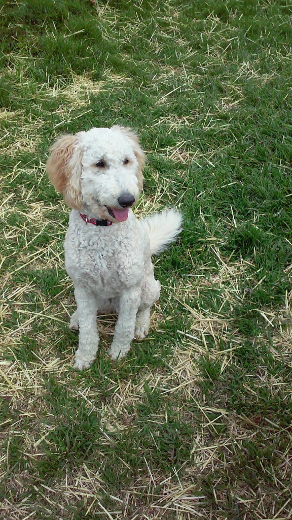 The dog above was “Molly” a foster dog of mine (Poodle/Golden mix) who came to us at about 9 months old & she was trained using a shock & a prong collar & they former owners claimed she knew all obedience/manners like sit, lay, stay, etc. I soon realized she knew none of these things, she did what she had to prevent pain from being jerked with a prong collar or shocked. She needed a lot of help to get over her insecurities, especially when she went to a new obedience class. Her new owners enrolled her in a positive only class, but her fears of what happened at previous classes would come out & she was anxious & hard to get her to focus for a while. I believe they did some private classes with her till she felt secure & safe again. Her owners think she may always have some insecurity due to the early months of her life, but they love her & she is a good travel dog.