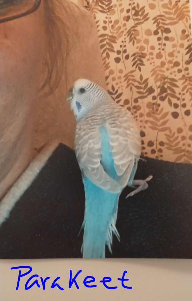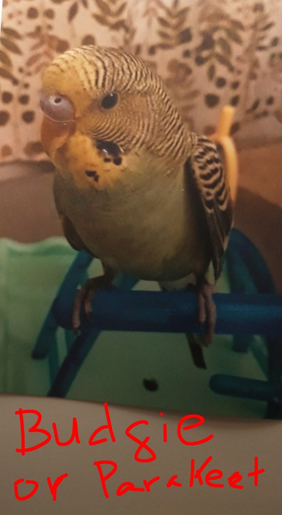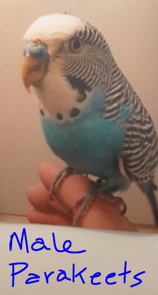 One thing that surprised me was when I sent the document to my Vet was she said I forgot a side effect of one common chemical in seed mixes. The side effect was aggression, yes it can cause aggression in birds. I had read about potential side effects such as anxiety, restlessness, fear & agitation. It got me to thinking about two foster Parakeets I had that had been with me for about 2 years & were overlooked by a number of people upon meeting them. The moment someone, even me entered the room they were in, they would start flying or jumping around & be all freaked out. If I tried to hold them they would try & bite me, I have a lot of bird experience so I was careful, but these two birds were so anxious & afraid. I tried working to tame them outside their cages with perches, but they wouldn’t even stay on a perch long enough to ever get any further in the training. Female Parakeets can be harder to tame, but as you can see from the 1st photo on this post I have a female Parakeet sitting on my finger.