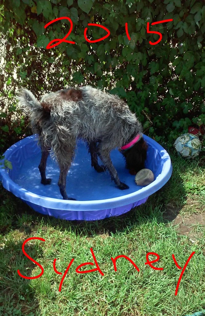 I had a covered turtle sand box on my patio for years when I fostered & if I had a dog that liked to dig I would teach them to only dig in the sandbox. This baby pool was used for water, which Sydney loved to dig in & kick the water out. She would run in & out of it & play. A baby pool can be used as a digging area, but you will need to cover it when there is a chance of rain, or put drain holes in the bottom & probably some on sides to drain any rain.