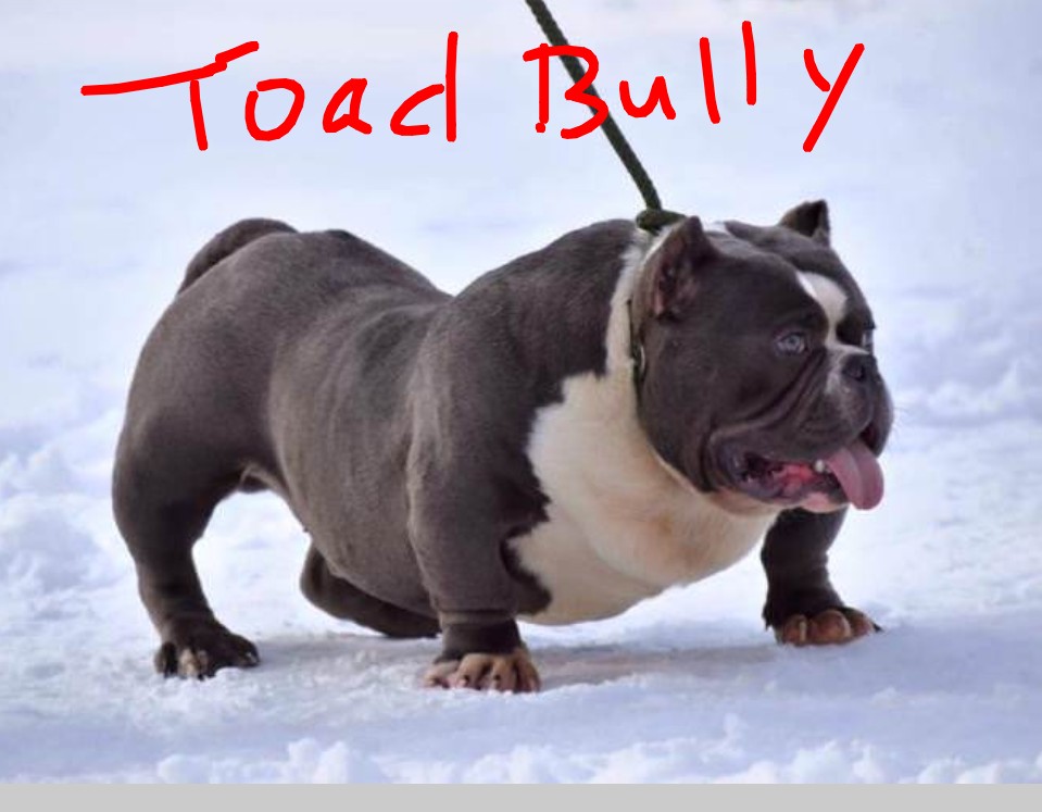 There is a new “designer” breed that I have heard about & I don’t exactly know what it is crossed with, but when I was shown a photo my heart went out to the dog. I can’t imagine this dog is comfortable in the legs or hips when trying to even walk. I don’t understand why some humans think in the name of $ it is ok to do this. Maybe there is another reason & you can explain it to me. The breed is called a Toad Bully, & this is just one photo I found there were others, but they made me sad to look at them. I was thinking how their joints, muscles, back, & hips must hurt to support their weight being so low to the ground & bowed legs.