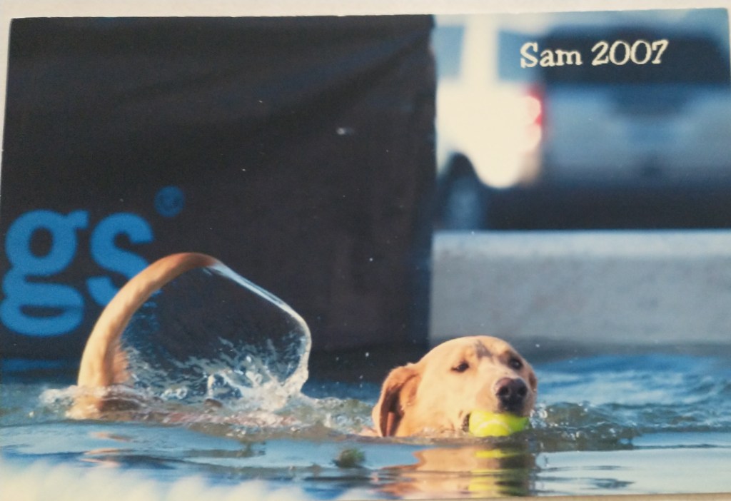 I always loved to see the proud & happy look on Sam’s face when we got his ball & swam to me.